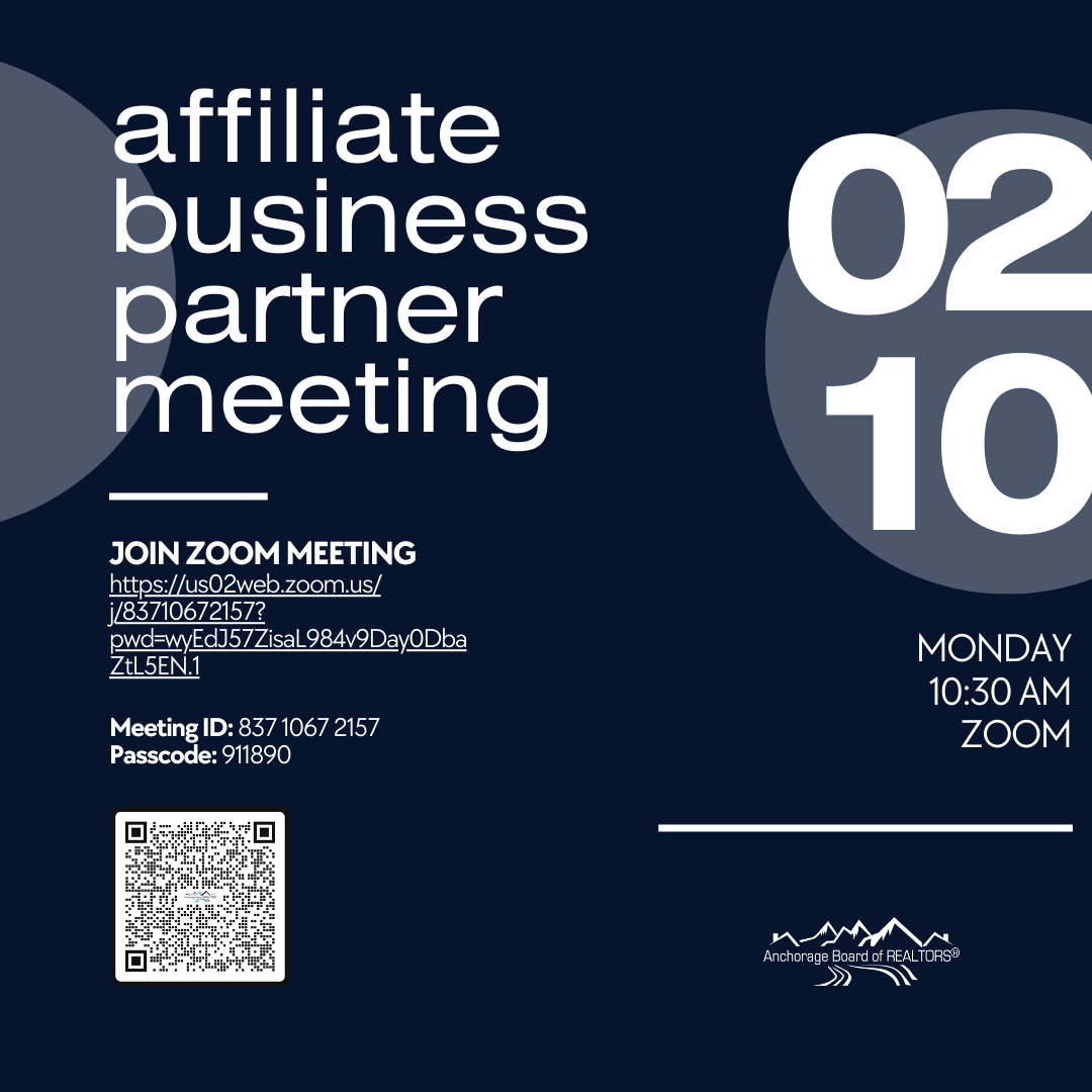 Please join us for a meeting to let you know about the upcoming activities at Anchorage Board of Realtors®.