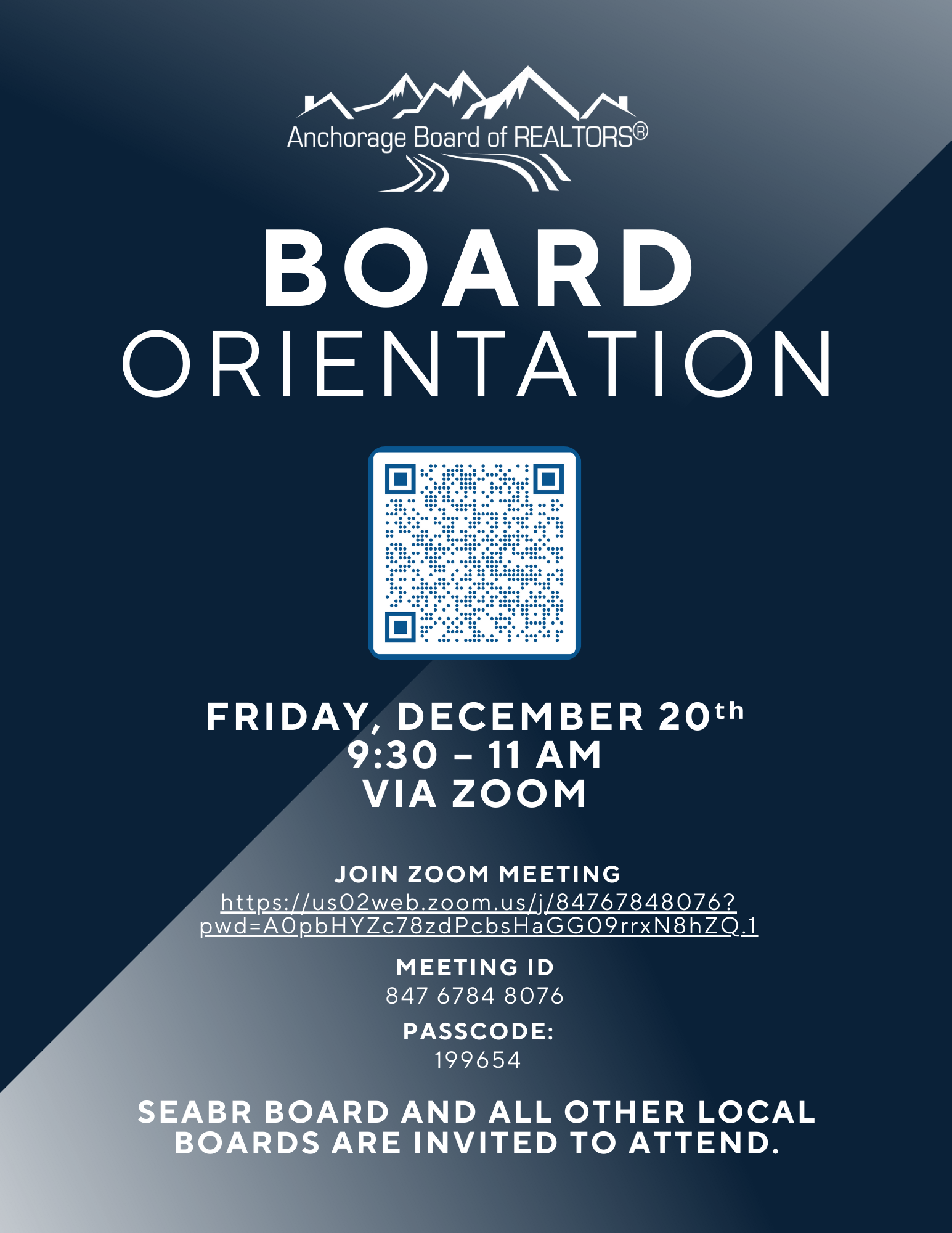 New to the Board or need a refresher of your duties? Kristie Smithers, ABR Association Executive, will present an an overview of roles and responsibilities of serving as a Director of the Anchorage Board of REALTORS®. Join us!