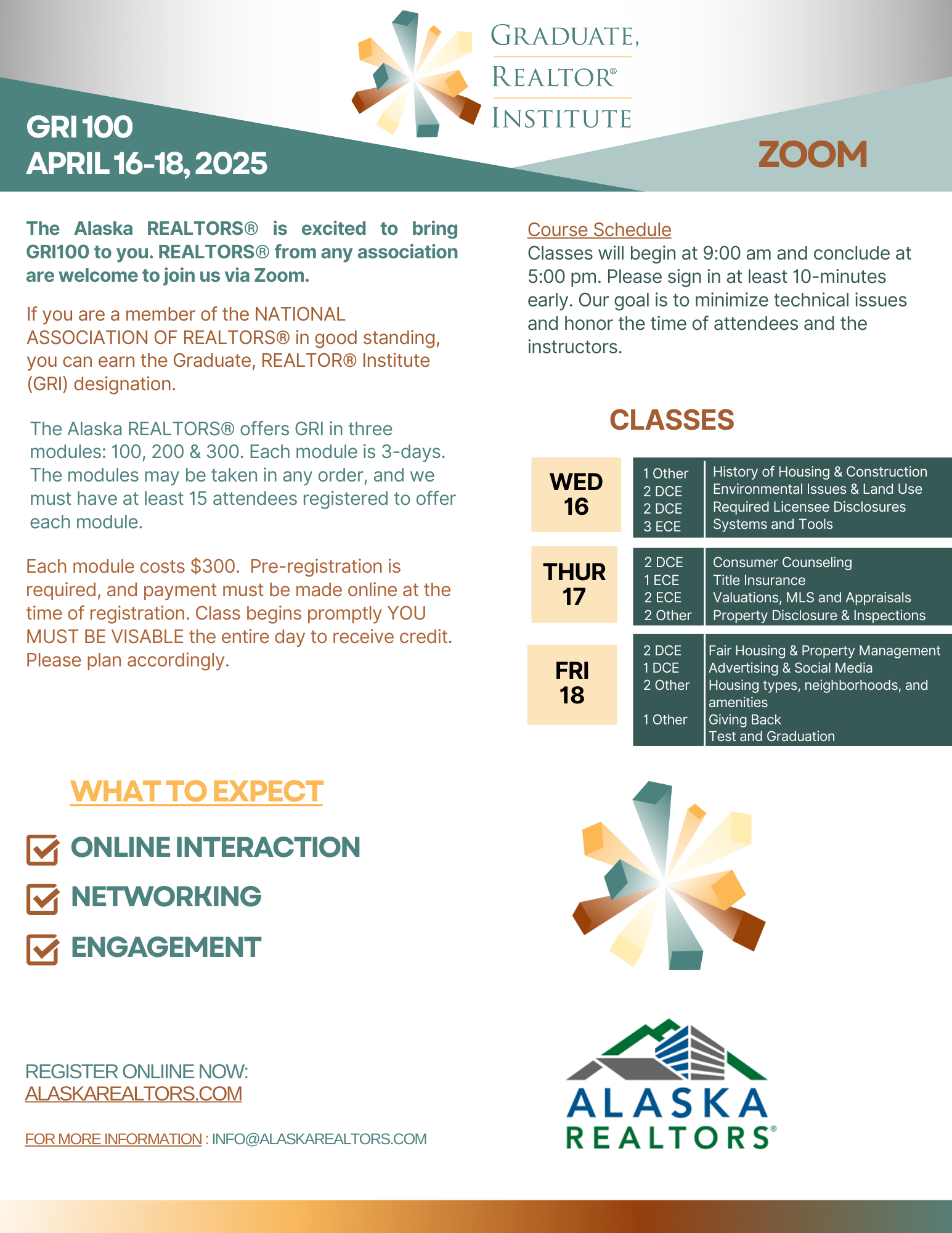 Alaska REALTORS® | GRI 100 Course | 8 DCE & 6 ECE