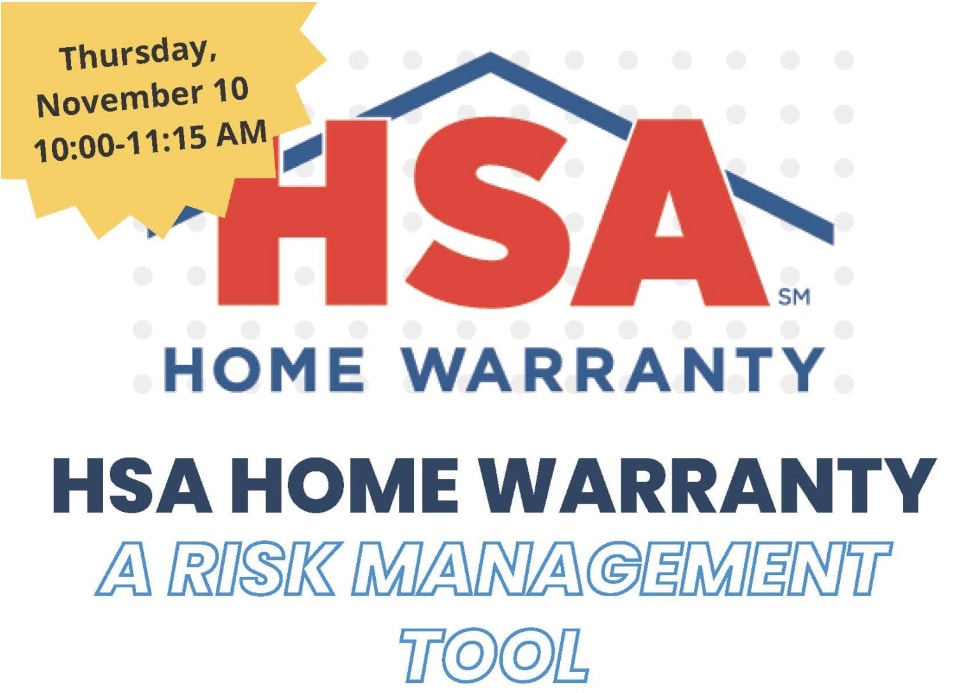 Join one of our Affiliate Business Partners, HSA Home Warranty for A Risk Management Tool class. This is a 1 hour ECE, Course #17477.