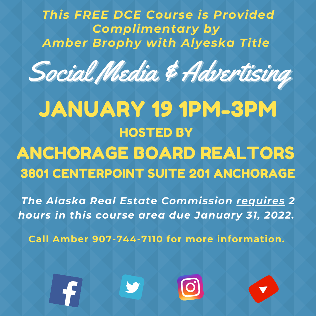 Join Amber Brophy with Alyeska Title for this Social Media and Advertising class!
