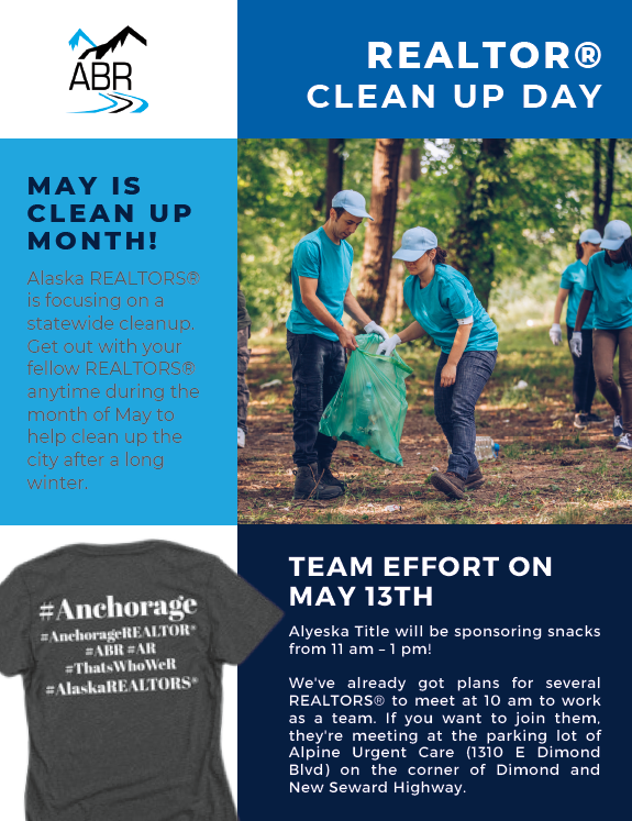 Join us for our team effort at 10 am to work as a team! Meet at the parking lot of Alpine Urgent Care, 1310 E Dimond Blvd on the corner of Dimond and New Seward Highway on Friday, May 13th! For more information please email: kasia@thegirongroup.com